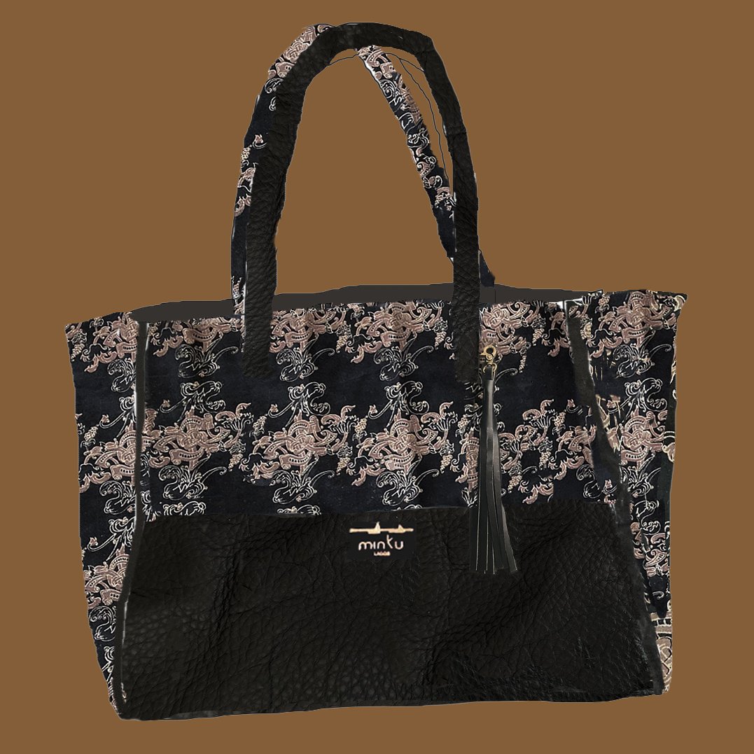 Wild does not begin to describe this structured work-to-leisure tote bag. Its colors and patterns within and without, its textural richness (suede leather), the clip-on starfish and sheephide pouch accessories that dangle from its side, the brash gold of its embossed logo... maximalism is alive and well in the atelier, and I'm glad to share this rediscovery with you.