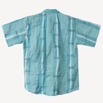 A clever weave on hand looms, that I can't take credit for. The idea to sew strips of the weave to form a collar, short sleeves... a men's shirt... that I can take credit for. The Minku logo is elegantly hand-stitched in gold thread on the upper left. A Yoruba traditional take to a very modern silhouette. Wear it with a baseball cap and heavy-cotton trousers in off-white.